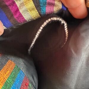 Maggy London Blouses Blazer Jacket Womens 8 Multicolor Striped 100% Silk Long Sleeve Button Front Vintage VTG Classic Shoulder Pads Business Retro Y2K 70s 80s 90s Rainbow Colorful Art To Wear