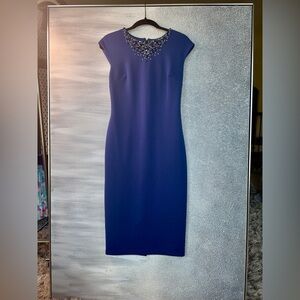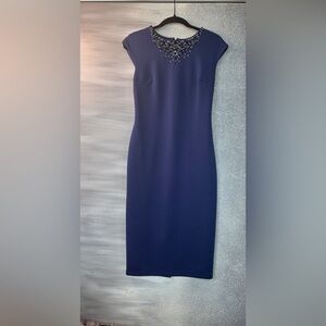 Maggy London Blue Embellished Sheath Midi Dress