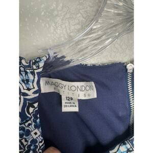 Maggy London Blue Geometric Sheath Dress Size 12P