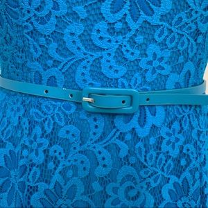 Maggy London Blue Lace Lined Keyhole Neck Fit to Flare Dress