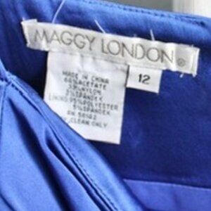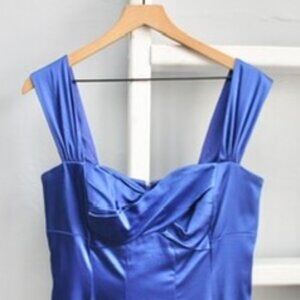 Maggy London Blue Satin A-Line Pleated Sleeveless Cocktail Midi Dress Size 12