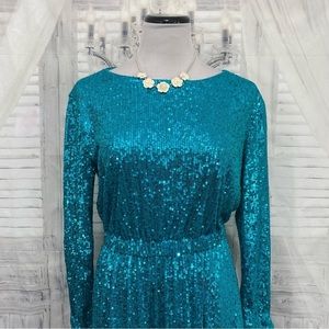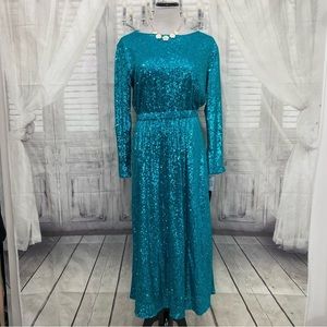 Stunning blue sequin midi dress. Long sleeves. Elegant and eye-catching design. Worn once… in like-new condition.