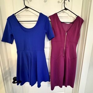 Elegant blue dress with short sleeves. Stylish purple sleeveless dress. Perfect for any occasion. Price is for both dresses.