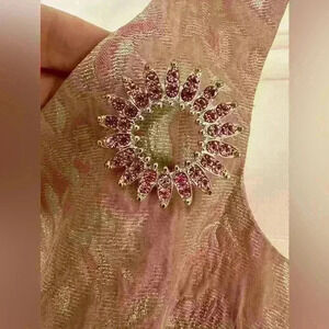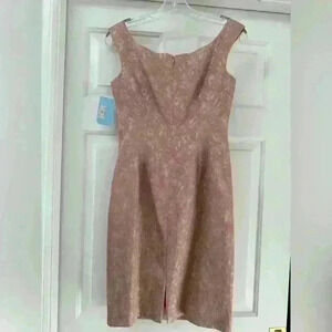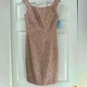Maggy London Blush Pink Floral Embroidered Knee Length Sheath Dress W/Broach