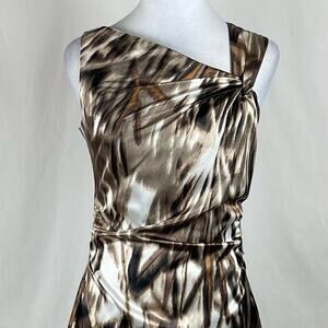 Maggy London Brown Tan Ruched Fitted Party Event Feminine Dress NWOT Size 8
