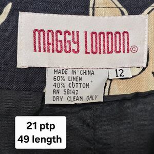 Maggy London Button Front Dress 10 Linen Blend Botanical Wooden Buttons Casual