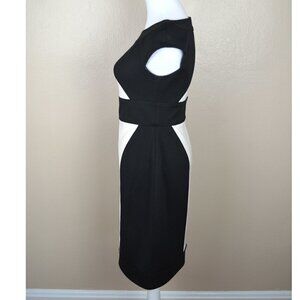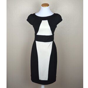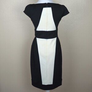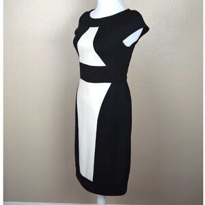 Maggy London colorblock sheath dress, size 6. Black and off-white/beigecolor. Cap sleeve, back zipper, thick "scuba" stretch material.