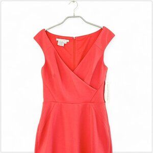 Maggy London Coral Stretch Wrap Look Seamed Detail Pencil Sheath Dress NEW NWT 8