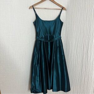 Maggy London Deep Teal Spaghetti Strap Fit-and-Flare Dress Bow Accent Size 2