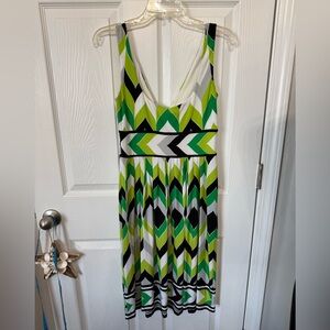 Maggy London Dress Womens 8 Petite Tank Stretch Knit V Neck Abstract 90s A Line