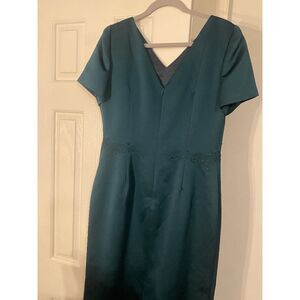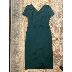 Maggy London Emerald Green Midi Satin Jeweled Detailing Dress, Size 10