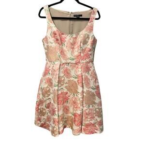 Maggy London Floral Jacquard Fit and Flare Sleeveless Dress Pink Cream Size 12