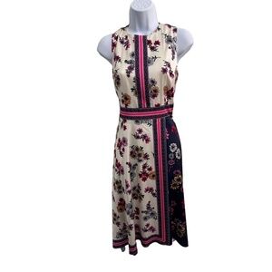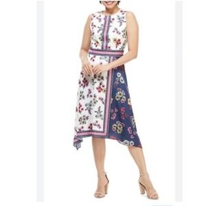 Maggy London Floral Print Sleeveless Scarf Hem Asymmetrical Fit Flare Dress US 2