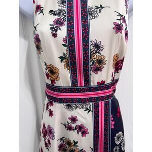 Maggy London Floral Print Sleeveless Scarf Hem Asymmetrical Belted Fit Flare Dress US 2