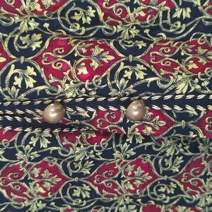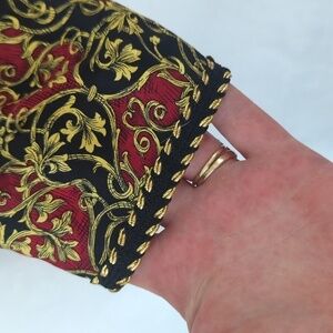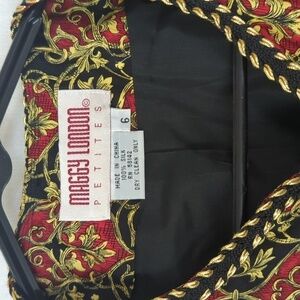 Maggy London Gold Red Black Damask Buttoned Cardigan Silk Size 6 Petite