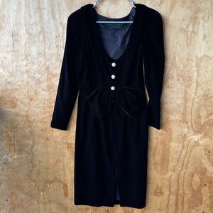 Maggy London Vintage Velvet Cocktail Dress Back Bow Buttons