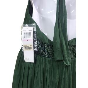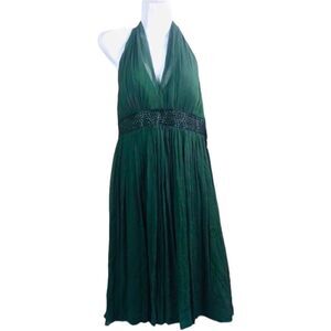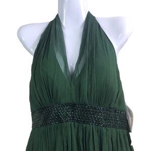 Maggy London Green Crepey Halter Beaded Gown Dress