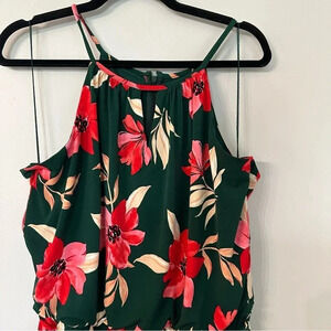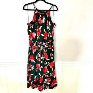 Maggy London Lottie Knit Crop Sleeveless Green & Floral Jumpsuit Size 12 NWOT
