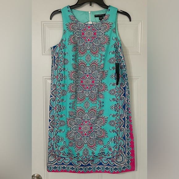 Maggy London Medallion Print Cotton Dress geometric Paisley Colorful Aqua Size 8