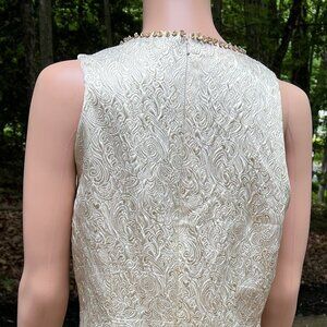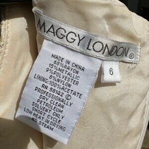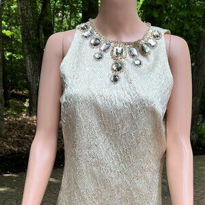 Maggy London Metallic Gold Dress w/ Distinctive Neckline & Raised Pattern size 6
