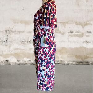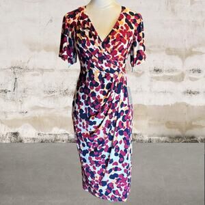 Maggy London NWT Short Sleeve Faux Wrap Midi Dress Multi-Size 0
