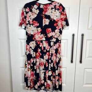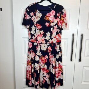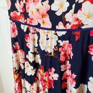Maggy London Navy Floral Fit & Flare Dress Size 16 Short Sleeve Pleated Skirt