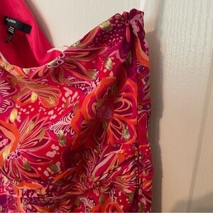 Maggy London One-Shoulder Asymmetrical Dress - Red and Pink Floral