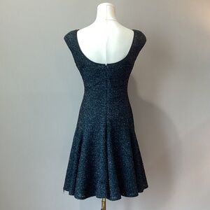 Maggy London Petites Scoop Back Metallic Fit & Flare Dress Black/Teal - Size 6P