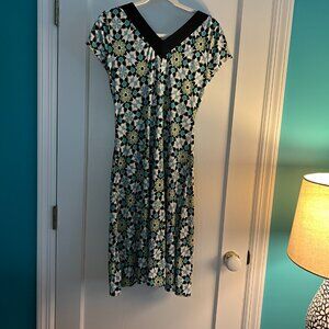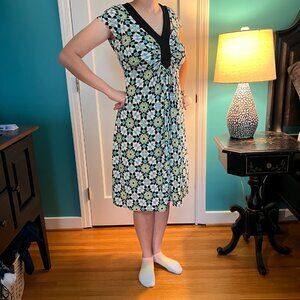 Maggy London Petites Short Sleeved Dress with Retro "Floral" Print - Size 6P