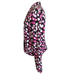 Maggy London Polka Dot Button-Up Jacket Size 14 Black Pink White Lightweight