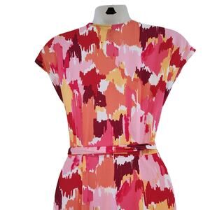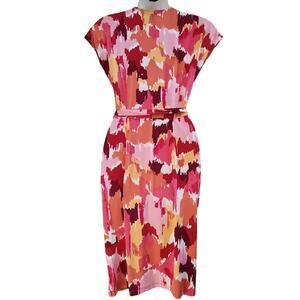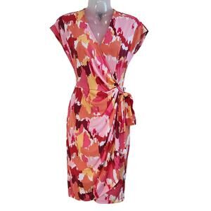 Maggy London Printed Abstract Jersey Wrap Dress V-Neck Watercolor Pink Size 4