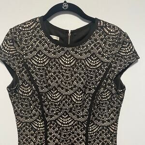 Maggy London Scallop Lace Fit and Flare Black and Nude Dress Size 8 EUC