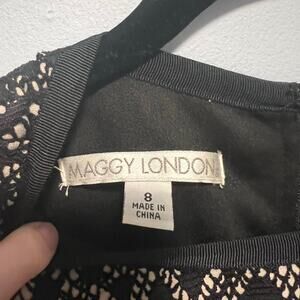 Maggy London Scallop Lace Fit and Flare Black and Nude Dress Size 8