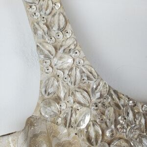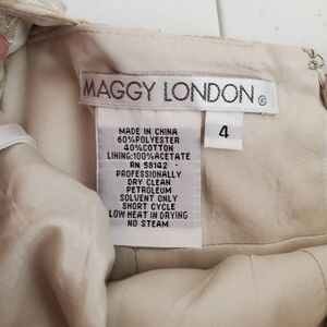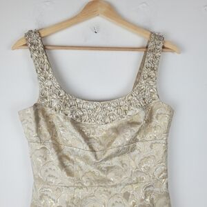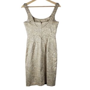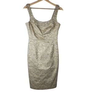 Maggy London Sheath Dress 4 Gold Beaded Jacquard Scoop Neck Sleeveless Back Zip