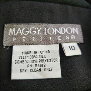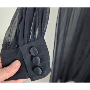 Maggy London Sheer Black Long Buttoned Duster Silk Jacket and Pants Size 10 Pet