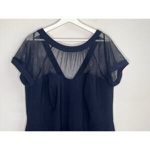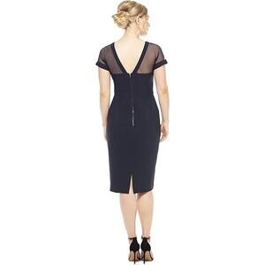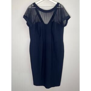Maggy London Short Sleeve Illusion Cocktail Sheath Dress Navy Blue Women's 16W