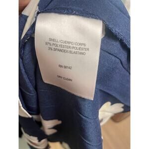 Excellent condition womens size 10 Maggy London blue and white floral dress-feature a v-neckline, pleated skirt with allover white floral design