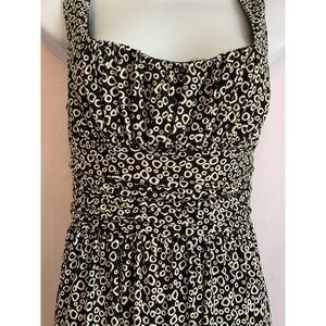Maggy London Size 8 Halter Dress Gathered Black and White Knee length Polyester