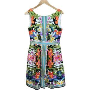 Maggy London Sleeveless Pleated A- Line Bright Floral Hawaiian Dress Women 8