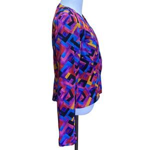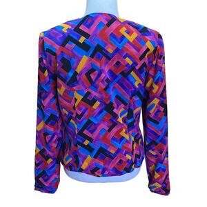 Maggy London Vintage 100% Silk Abstract 90s Geometric Shape Zip Up Blazer 6