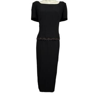 Maggy London Vintage 90s Lined Sheath Short Sleeve Whimsigoth Black Dress sz 6