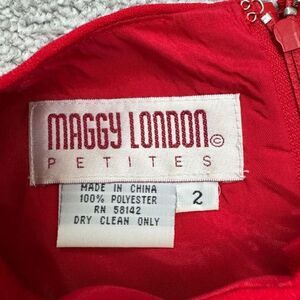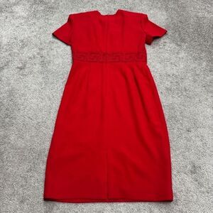 Maggy London Vintage Midi Sheath Dress Womens 2 Red Short Sleeve Keyhole Work