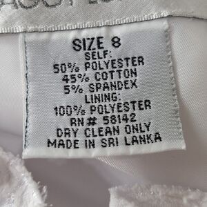 Maggy London White Lace Ruffle Neck Romantic Bridal Sheath Midi Dress Size 8