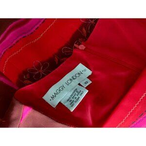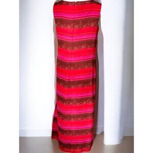 Discover the charm of this Maggy London maxi dress, designed to offer both elegance and comfort. With its vibrant red and pink stripes, this sleeveless dress is lined for added comfort and features a flattering side slit. The back zipper ensures an easy fit, making it a versatile addition to your wardrobe.