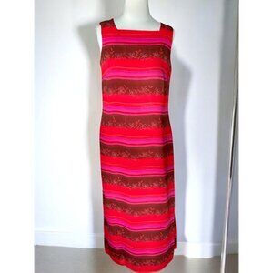 Maggy London Woman Maxi Dress Size 10 Sleeveless Striped Side Slit Back Zip Red