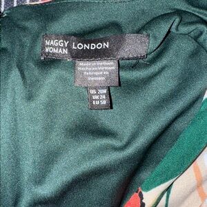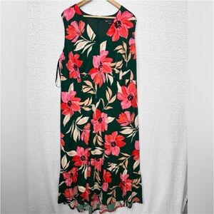 Maggy London Woman Plus Size 20W Green Pink Floral Sleeveless Maxi Dress