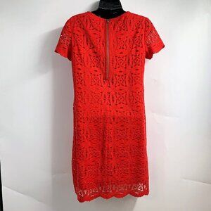 Maggy London Women Crochet Overtop Round Neck Short Sleeve Shift Dress Size 2