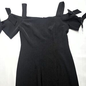 Maggy London Women’s Black Cold Shoulder Midi Sheath Cocktail Evening Dress Sz 2