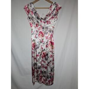 Maggy London Women's Floral Sheath Dress Sz 2 V Neck Side Ruched Feminine