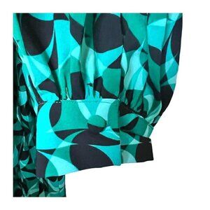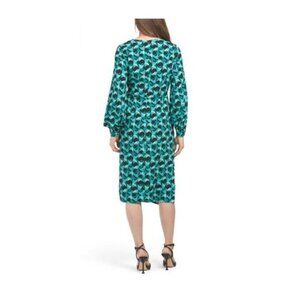 MAGGY LONDON Womens Green Black Print Long Sleeve Wrap Midi Dress Sz 10 NWT ~ Last One